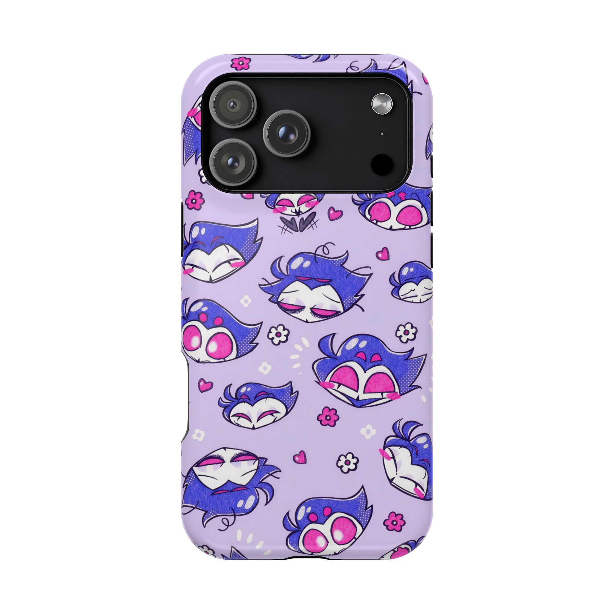 Show off your fun side with this Angel Dust Expression iPhone Case, featuring an adorable pattern of Angel Dust’s playful faces across a soft lavender background. The design blends anime-inspired cartoon art with a pastel purple aesthetic, giving your phone a bold yet cute personality. Crafted for style and durability, the case offers dual-layer protection with a tough polycarbonate outer shell and soft TPU inner lining to keep your iPhone safe from drops and scratches. The glossy high-definition finish enhances every detail — from Angel Dust’s pink eyes to the tiny hearts and flowers sprinkled around. Whether you love anime art, Angel Dust characters, or pastel aesthetic phone accessories, this case adds a perfect dose of personality to your daily look.- Material: Durable polycarbonate shell