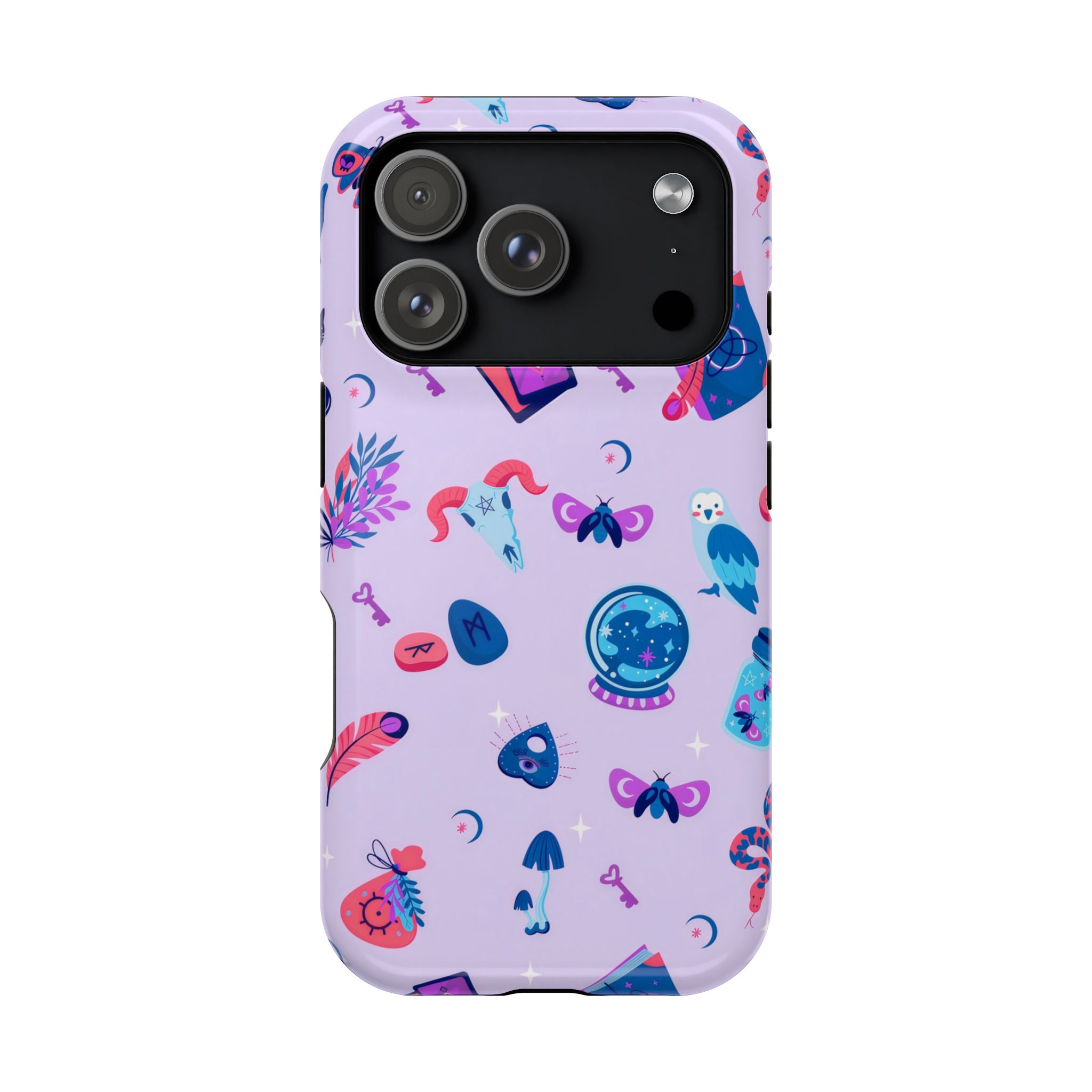 Mystic symbols iPhone case with witchy purple design. Glossy finish, strong protection, and MagSafe compatibility for all iPhone models.