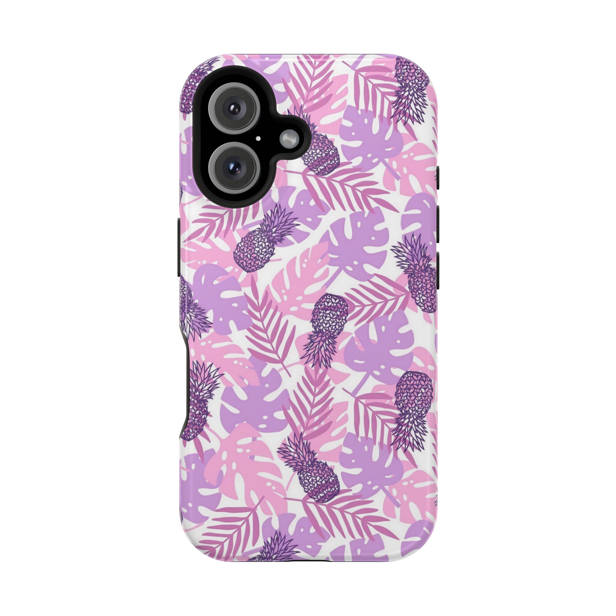 This design mixes purple pineapples with soft pink and lilac tropical leaves. The pattern has a bright, playful island vibe with a pastel twist, giving your phone a fun and fresh look.